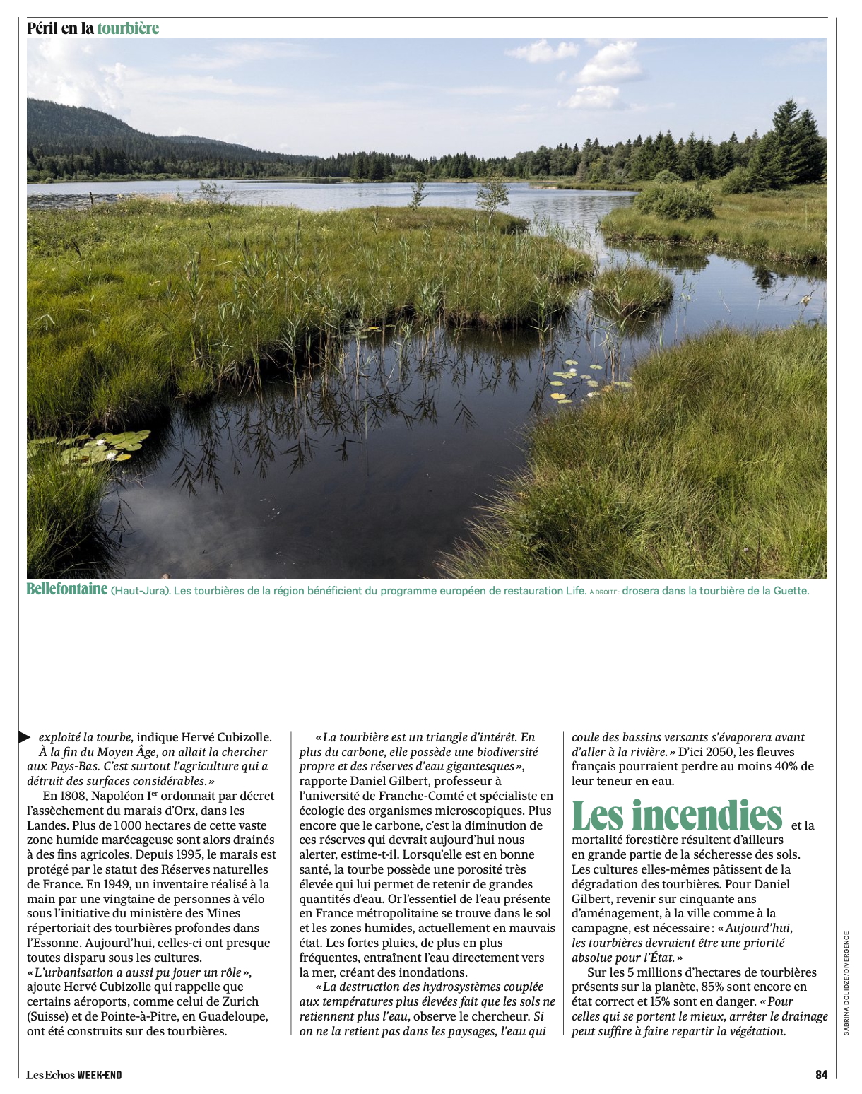 "Péril en la tourbière" avec en photo la tourbière du lac de Bellefontaine dans le Jura.