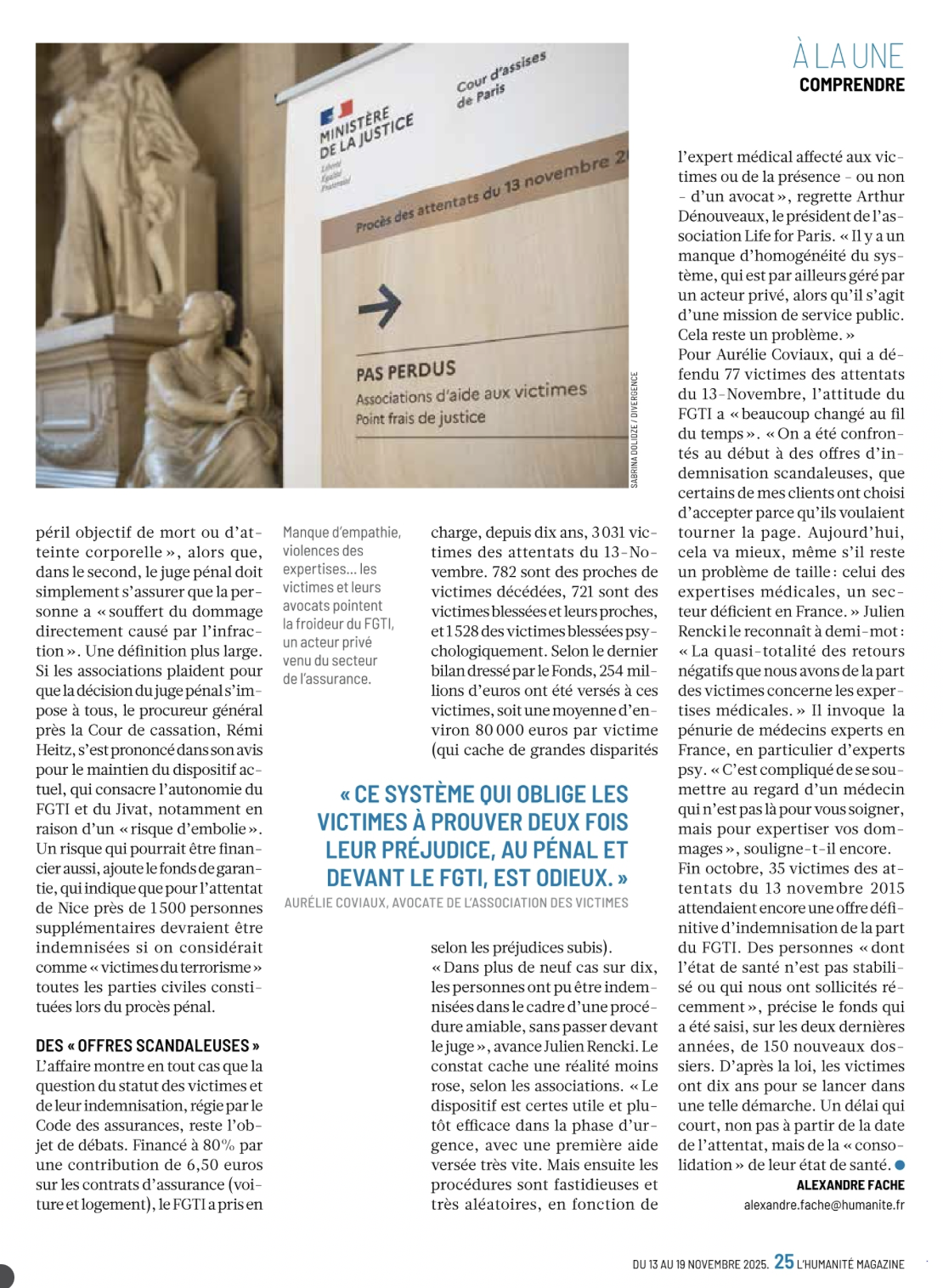 Reportage dans l'humanité magazine "10 ans après les attentats, une lente reconstruction" par Nadège Dubessay.