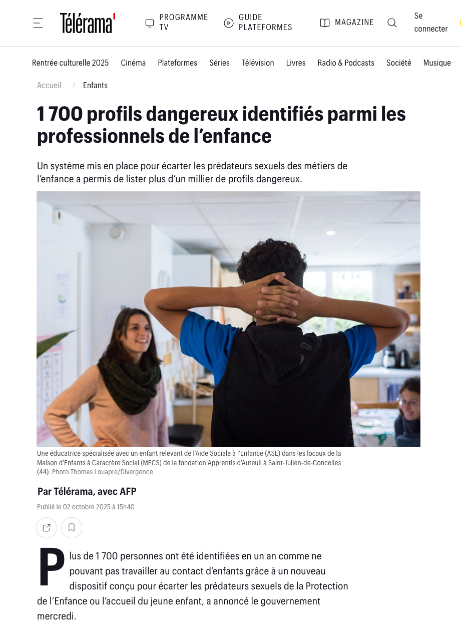 Aide sociale à l'enfance dans Télérama
