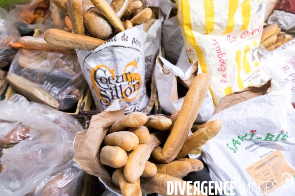 Tri des invendus de pain collectés par l'association Du Pain contre la faim dans les boulangeries et supermarchés à Nantes.