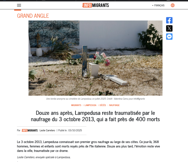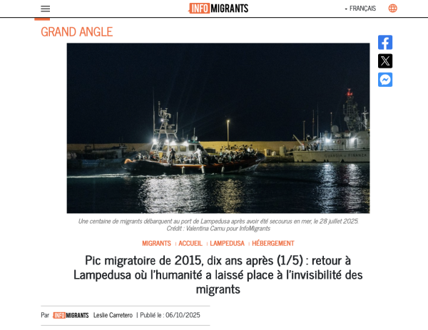 Publication extraitre du Reportage pour Infomigrants à Lampedusa, Italie.