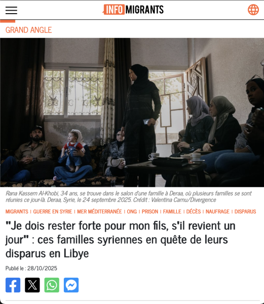 Publication reportage "« La mer a emporté mon oncle » : des exilés disparaissent dans la Manche sans laisser de trace, tarvail collectif avec les journalistes Maia Courtois, Simon Mauvieux, Mael Galisson et Nicola Kelly, avec le support de JournalismFound...