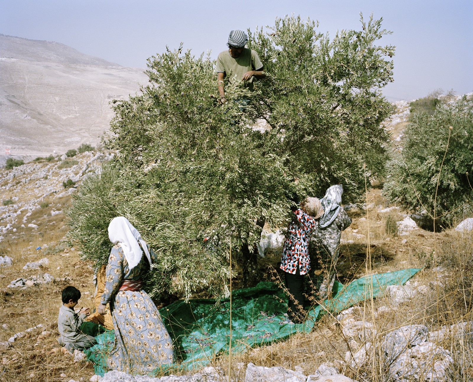 Récolte des olives par une famille palestinienne, vers Naplouse en Cisjordanie. Palestinian family harvesting olives near Nablus in west bank.