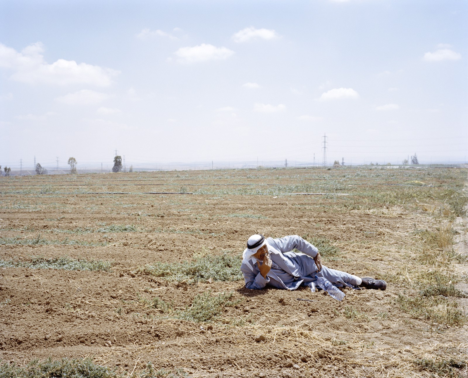 Pause cigarette d’un bédouin responsable des travaux agricoles de propriétaires israéliens. Cigarette break of a Bedouin agricultural foreman working for Israeli owners.