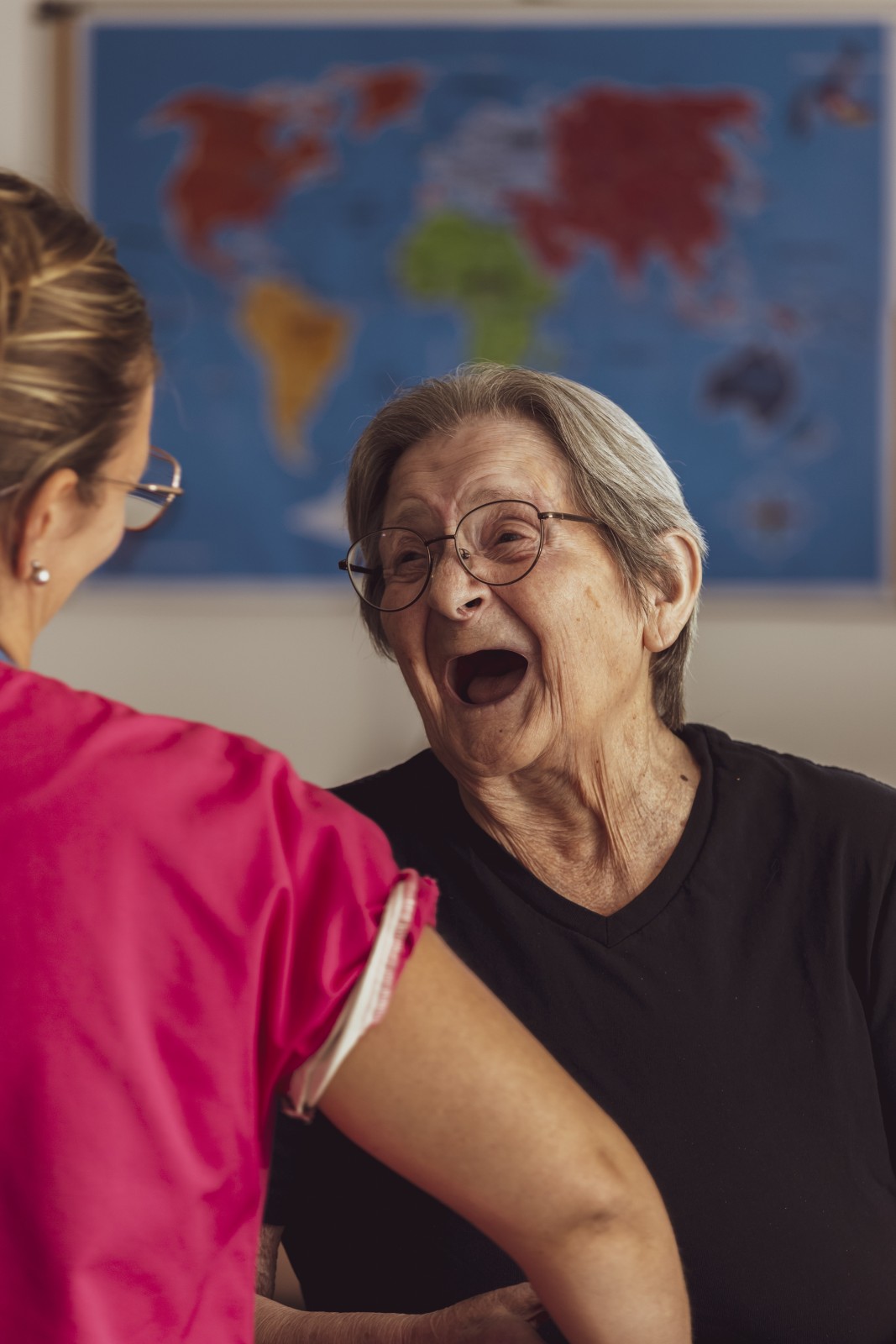 Massage doux par le kiné d'un Ehpad pour une résidente