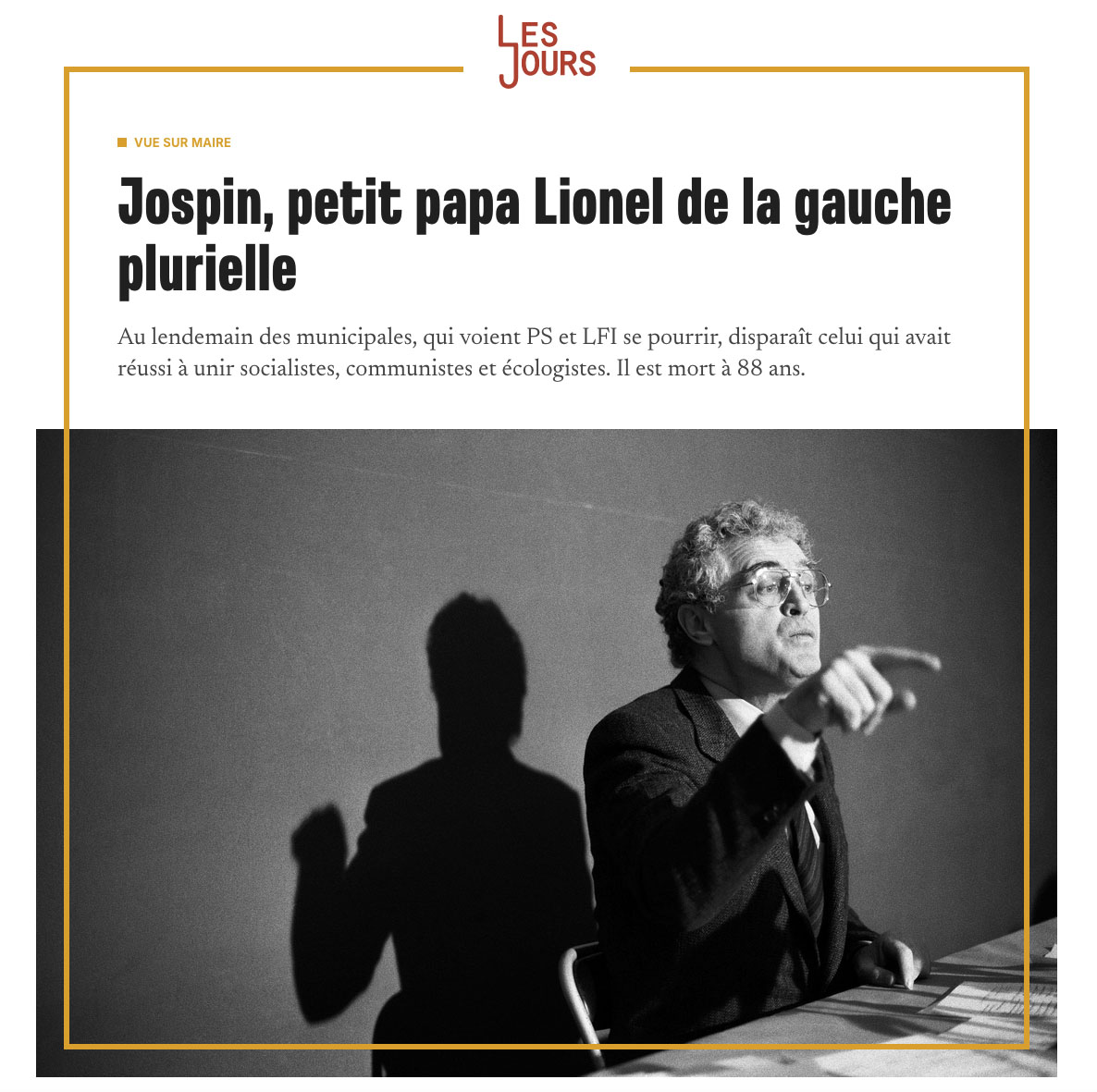 Les Jours, "Jospin, petit papa Lionel" par Vincent Leloup