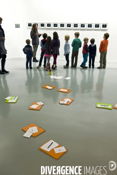 ©Xavier Testelin.Novembre2013.Dunkerque.France.Un groupe d'enfants avec une médiatrice culturelle en visite dans une des salles du LAAC, Lieu d'Art et Action contemporaine.